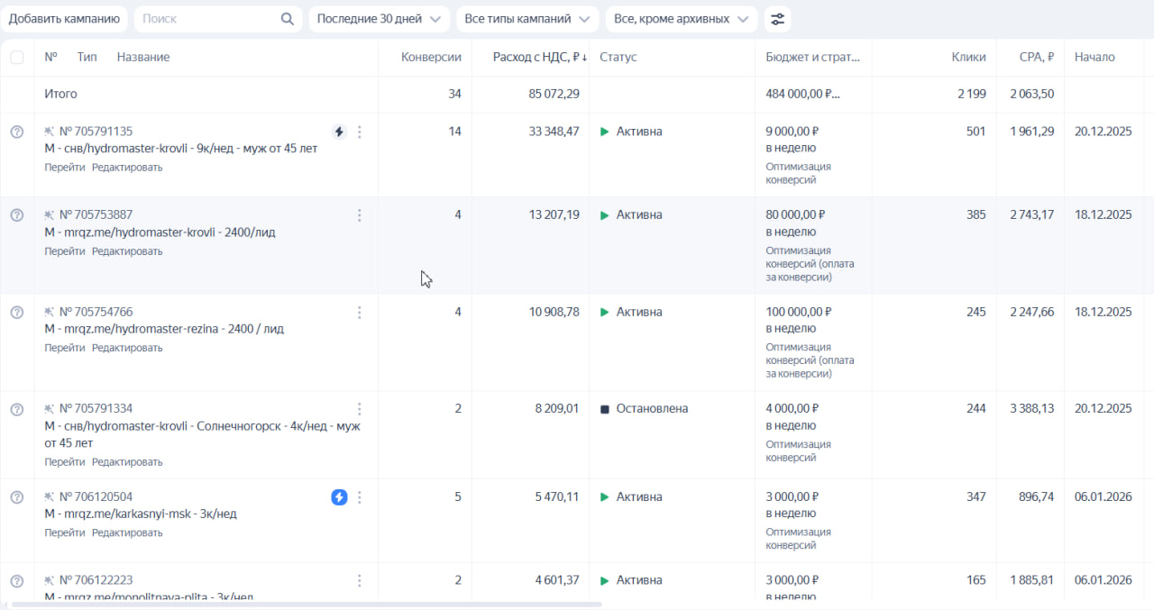 Я сильно с этим заморочился. За вас последние 5 лет тестировал на десятках клиентов, что дает на минимальный бюджет максимум качественных заявок. Сэкономьте себя годы жизни и сотни тысяч бюджета. Пользуйтесь готовым.