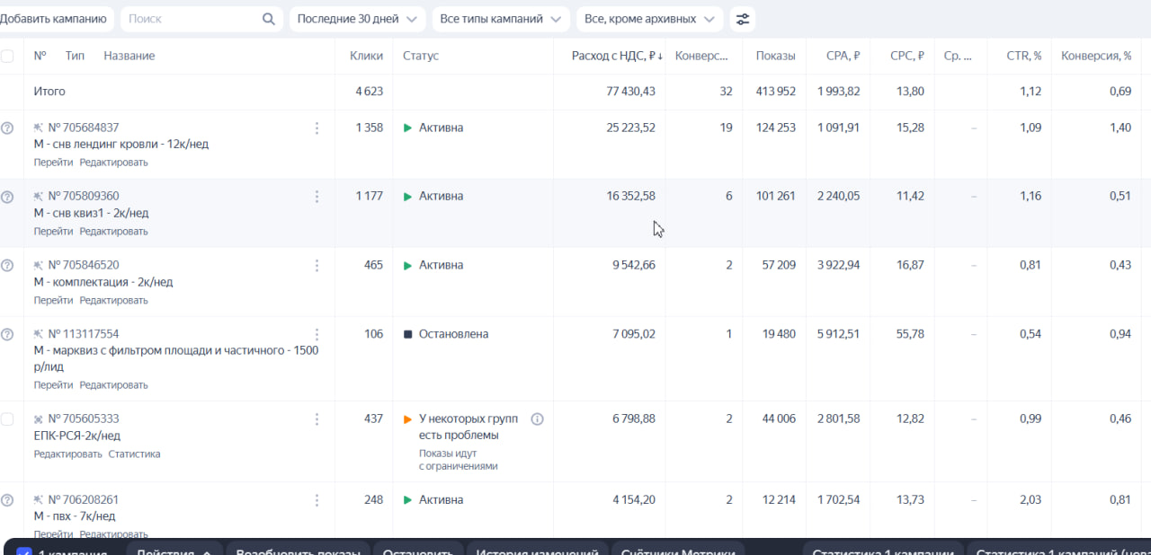 Понимаю, у вас достаточно заявок с авито, хватает "каких-то" заявок и с вашего сайта, но можете ли вы ТОЧЕЧНО надавить на 1 конфигурацию крыш из почти 1000, которая приносит вам больше всего денег? Со мной - сможете. Я уже это для вас сделал. И на это уже до идеала вылизан яндекс.директ. На каждую комбинацию!